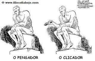 Atualmente encontramos mais "clicadores" do que "pensadores". O pensar foi deixado por um simples clicar. Esse simples clicar vem carregado de informações, assim não restando espaço para o pensar. Mas ainda tenho esperança de que isso mudará, e o mundo passará a ter mais pensadores do que clicadores. Vamos começar mudando isso agora? Então, tu podes começar a mudança comentando este post, em vez de apenas clicá-lo.