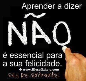 Parece uma coisa simples, mas é extremamente complexa. Quantas são as pessoas que conseguem dizer não inclusive para seus desejos mais importantes e ao mesmo tempo mais desnecessários? "Dizer não" é uma vitória da razão e da autonomia. Me lembro dos tempos de quartel, onde entre todas as coisas, dizer não era a mais proibida de todas... tristes tempos aqueles...