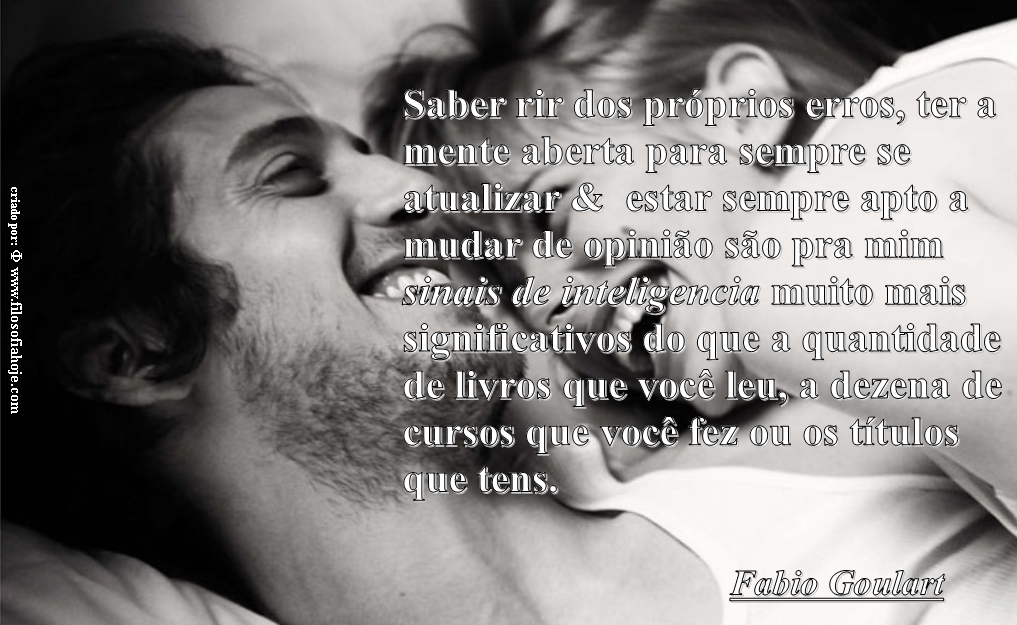 Frases de Filosofia - Saber rir dos próprios erros, ter a mente aberta para sempre se atualizar e estar sempre apto a mudar de opinião são pra mim sinais de inteligencia muito mais significativos do que a quantidade de livros que você leu, a dezena de cursos que você fez ou os títulos que tens. - Fabio Goulart