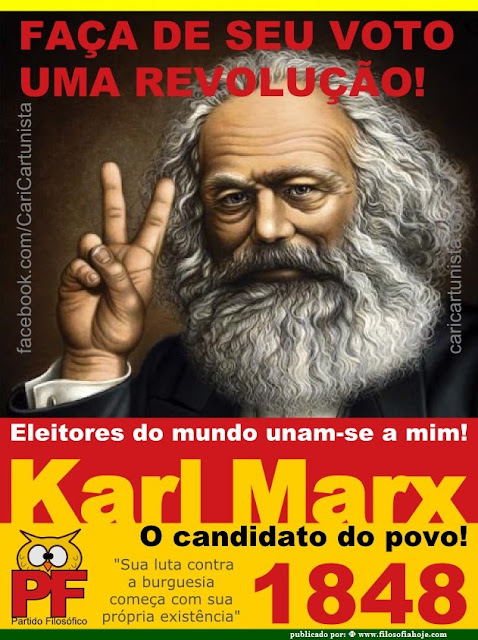 Você que simpatiza com a esquerda, se pudesse votar no Marx, votaria nele? enquanto isso COMPARTILHE e CURTA Filosofia Hoje ! Participe também do blogwww.filosofiahoje.com Nos ajude a continuarmos nosso trabalho de sempre levar até você conteúdo de qualidade para sua reflexão diária, basta clicar no link e depois em VOTAR http://www.topblog.com.br/ 2012/ index.php?pg=busca&c_b=1214 7235 juntos vamos ganhar o Top Blog 2012 :)
