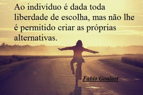 Ao indivíduo é dada toda liberdade de escolha, mas não lhe é permitido criar as próprias alternativas. (Filósofo Fabio Goulart - Da página Filosofia Hoje)