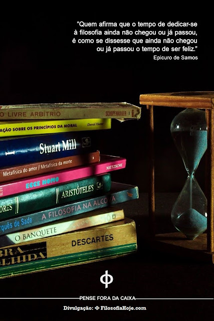 Epicuro de Samos: quem afirma que o tempo de dedicar-se à filosofia ainda não chegou ou já passou e como dizer que ainda não chegou ou já passou o tempo de ser feliz.