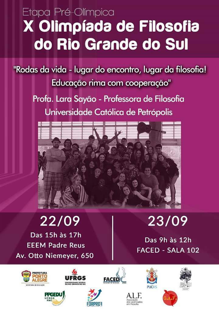 Olá amigos, gostaria de convidá-los para assistirem o evento de filosofia que acontecerá nesta sexta (22/9) na escola Padre Reus em Porto Alegre. :)