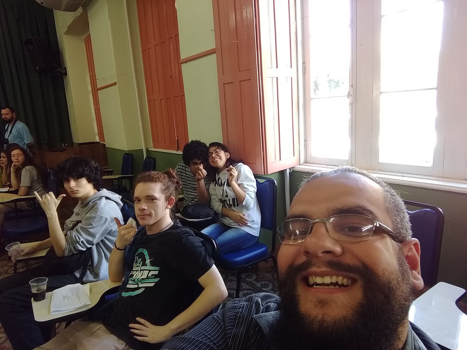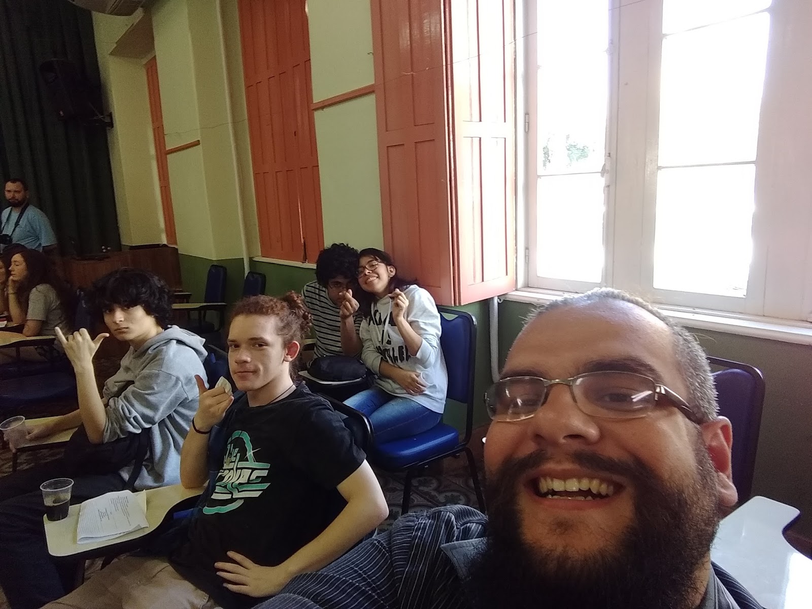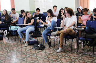 No dia 20/10/2017 aconteceu o II Ciclo de Debates do Bom Conselho. A pauta geral foi "Que Brasil você quer?". Uma tarde ensolarada e uma gurizada discutindo com respeito e fraternidade sobre como eles estão decidindo fazer a diferença. A gente saiu com muita esperança desse evento... ... e com muita gratidão a todos os apoiadores. O número de participantes praticamente dobrou em relação ao ano passado. Muito obrigado a essa galera linda do Bom Conselho. Estiveram presentes estudantes desde o 7º ano até o 3º ano. As gurias e os guris simplesmente organizaram muitas coisas! Seriam tantos nomes pra citar que eu tenho receio de ser injusto aqui! Muito obrigado aos queridos ex-alunos. Sempre junto, acreditando! Um agradecimento carinhoso às escolas parceiras, aos professores amigos. Será um prazer retribuir essa confiança. Obrigado ao Colégio Farroupilha, ao professor Michael De Souza Cruz e Artur Bezzi. Obrigado ao Instituto Federal Sul-riograndense, ao professor Fábio C. Ribeiro Mendes. Obrigado à Escola Estadual Padre Reus, ao professor Fabio Goulart. Muito obrigado ao diretor Antonio Dreyer, à Irmã Nelsi, à Lenara, incansável, ao corpo diretivo como um todo e aos colegas professores, por acreditarem no projeto. Junto fazemos do Bom Conselho esse espaço de educação que trabalha por um futuro que valha a pena. Obrigado aos amigos do suporte técnico! Deu tudo certo! No ano que vem tem mais! Beijos filosóficos! (Fábio Gay Pereira)