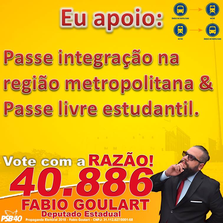 Fabio Goulart 40886 apoia Passe integração e Passe livre estudantil.