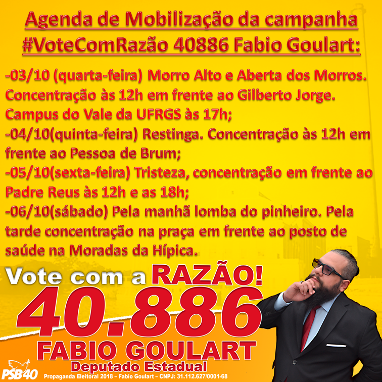 Agenda de Mobilização da campanha #VoteComRazão 40886 Fabio Goulart: