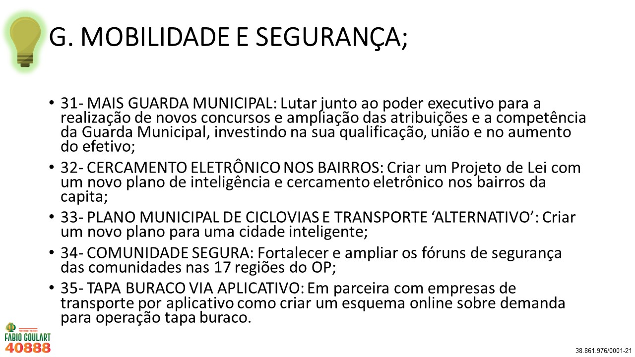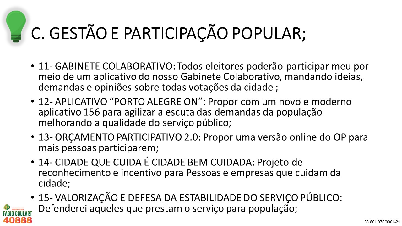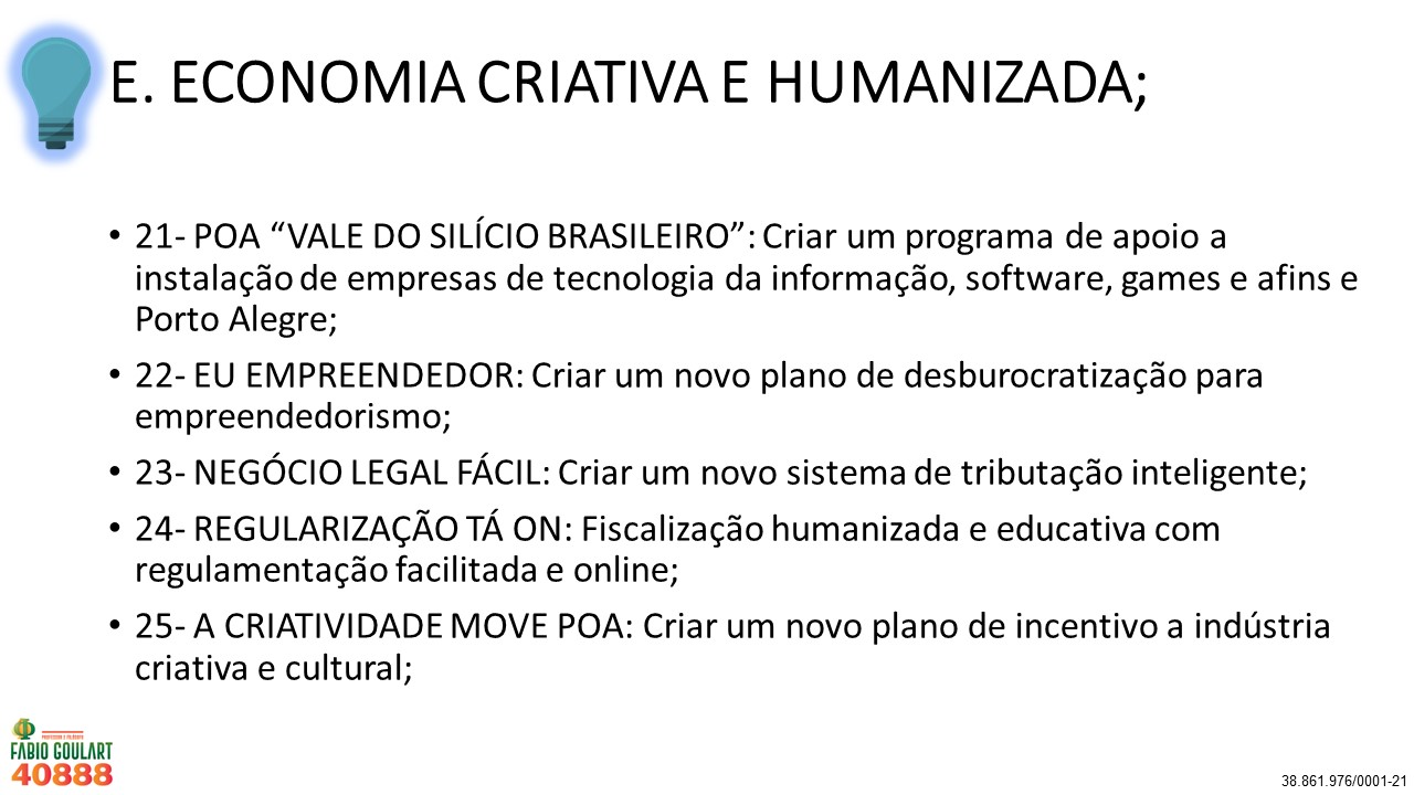 40 Propostas para Porto Alegre do Professor e Filósofo Fabio Goulart 40888 nas eleições 2020