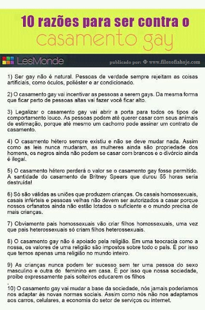10 Razões para ser contra o Casamento Gay