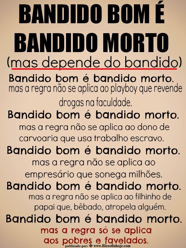 Vivemos num mundo tomado pela banalidade do mal. Quando um homem, ombreando a briosa farda da milícia de Tiradentes, abrevia, covardemente, a existência de um inocente e desce, calmamente as escadas, onde jaz o pobre menino negro, isso não é apenas um caso isolado: todos nós, em menor ou maior escala, somos culpados.