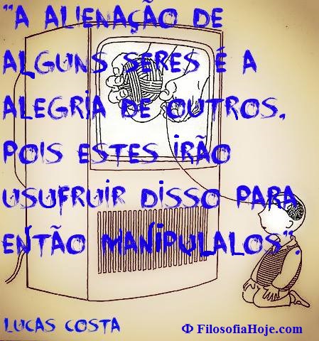 Por mais que a imprensa marrom se esforce pra transformar os fatos em espetáculos, o telejornal a muito tempo foi superado pela novela na hora de lidar com a opinião pública. O personagem que morre na novela causa comoção e debates muito mais acalorados do que as dezenas que morrem nas ruas e aparecem nos jornais. Devemos lembrar que a alienação também se dá a partir dos “temas polêmicos” que normalmente aparecem em segundo plano na teledramaturgia. Quando um autor aborda em sua novela um tema como “homossexualismo e homofobia” não faz isso para causar reflexão e diálogo sincero em seu público, faz para pregar as intenções ideológicas de sua emissora e dos respectivos anunciantes sobre o tema. Aguardo ansiosamente para ver o dia que a novela apresentar uma personagem consumista, será no mínimo engraçado, certamente não será dramático. Não são poucas as pessoas que “conhecem a realidade” de temas tão delicados a partir das dramatizações tendenciosas da indústria cultural, com isso alguns passos importantes são dados na direção da alienação das massas. Ao assistir o drama antes de vivenciar o fato a o força crítica e chocante da realidade se dissipa, (nos tornamos mais insensíveis) e ao saber de ante mão o que aconteceu naquela situação na novela nos preparamos não para enfrentarmos aquela situação da melhor forma possível, mas para agirmos exatamente como as classes dominantes desejam que agirmos para que eles consigam continuar a exercer seus domínios sem a interrupções (nos tornamos previsíveis). (Filósofo Fabio Goulart - Da página Filosofia Hoje)