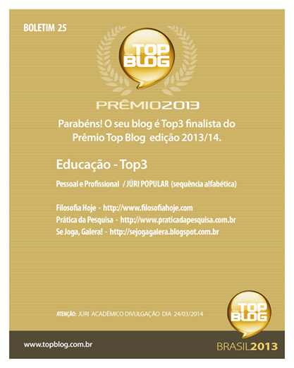 Filosofia Hoje é Top3 finalista do prêmio Top Blog 2013 / 2014