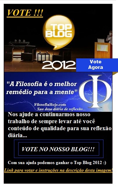 Assim você vota três vezes no www.FilosofiaHoje.com e contribui para a vitória do Blog. Nos ajude a ganhar, estamos entre os 100 Finalistas agora falta pouco... :)