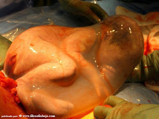Não se preocupe com o bebê da foto, pois ele está muito bem! Esta é a imagem de um "parto empelicado" onde o bebê nasce ainda envolvido pela bolsa amniótica. É um parto extremamente raro e, para muitos, é considerado o mais perfeito que pode existir. Isto é a combinação perfeita entre o poder da ciência e a beleza da vida!!!